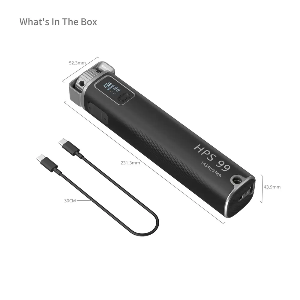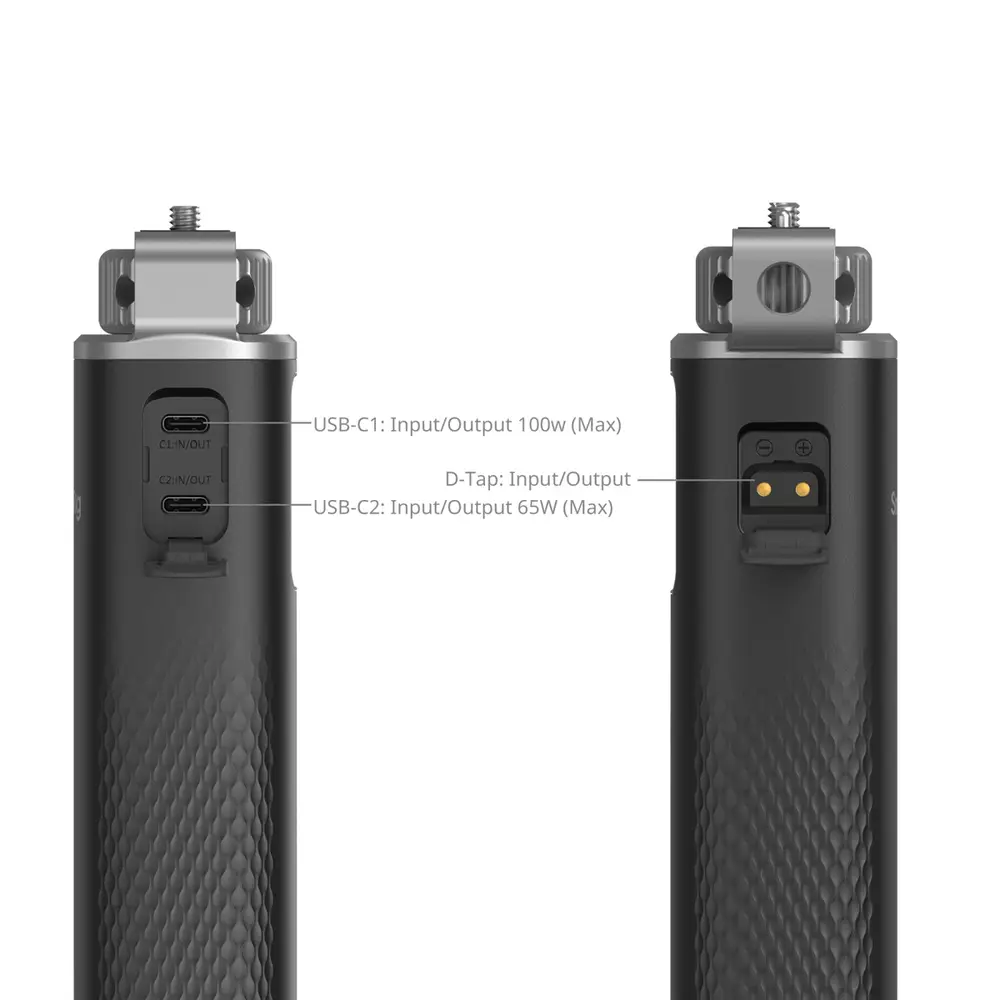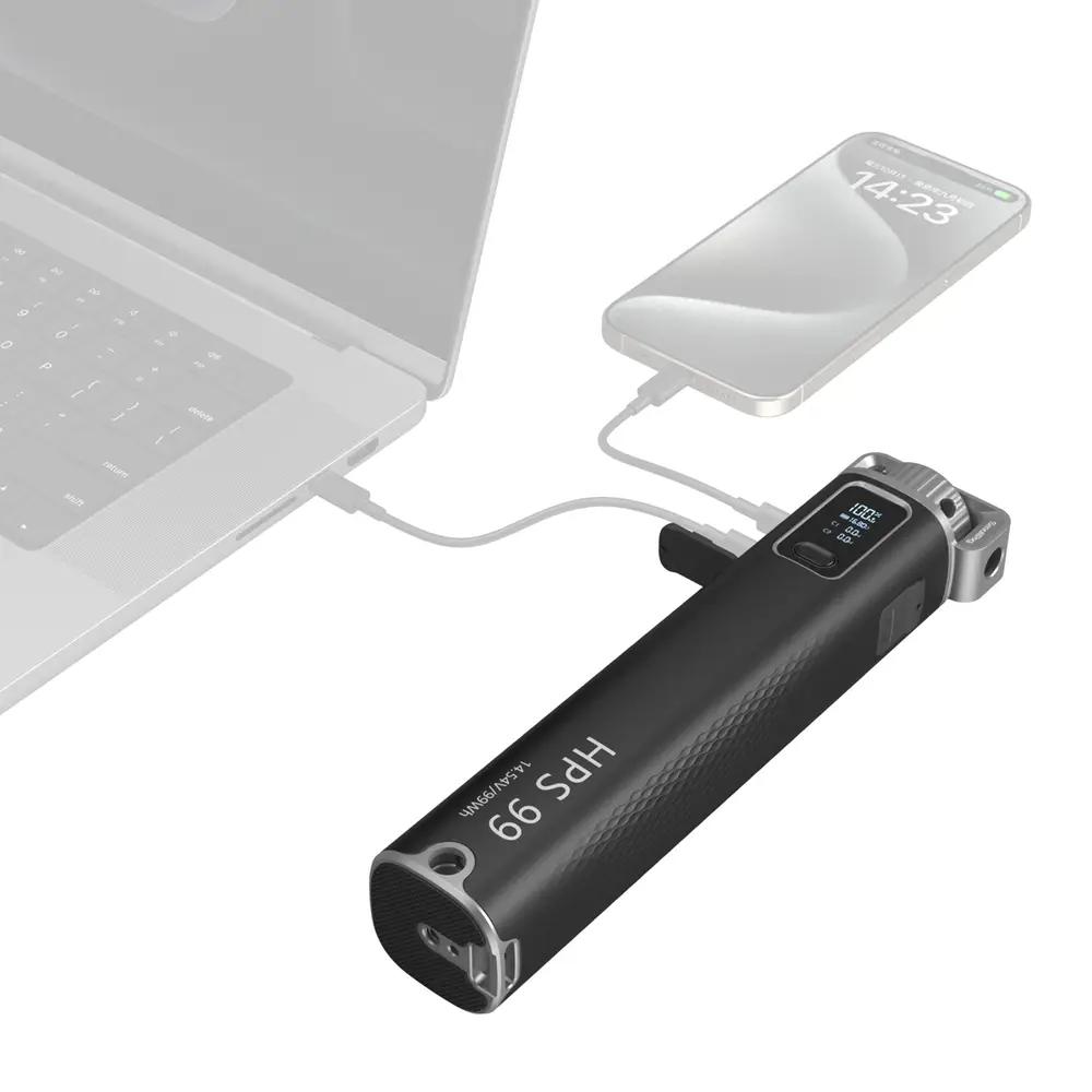 Der SmallRig HPS99 Handheld Power Stick 4553 kombiniert hocheffiziente Energieversorgung mit einem tragbaren Design. Mit seiner 100-W-Schnellladetechnologie ist er in nur 2 Stunden vollständig aufgeladen und bietet gleichzeitig zuverlässige Energie für professionelle Fotoausrüstung. Die innovative QD-Schnellkupplungsschnittstelle ermöglicht die sofortige Befestigung des Schultergurts mit einem einzigen Klick und verhindert so ein versehentliches Fallenlassen, und das seitliche Design ermöglicht das bequeme Tragen am Gürtel, wenn er nicht gebraucht wird. Der Power Stick bietet vielseitige Befestigungsmöglichkeiten mit einer oberen 1/4„-20 Schraube und einer unteren 1/4“-20 Gewindebohrung für nahtlose Kompatibilität mit verschiedenem Zubehör.
