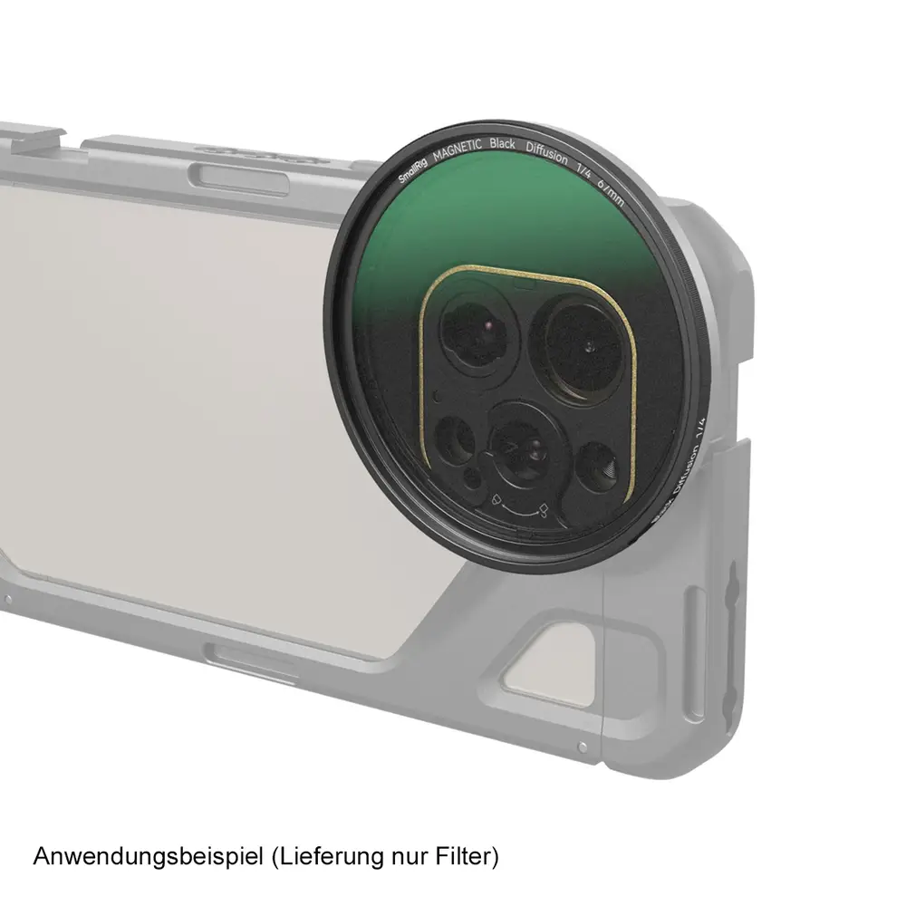 Das magnetische Befestigungssystem ermöglicht dem Benutzer ein schnelles und effizientes Anbringen und Auswechseln der Filter. Es ist mit den mobilen Videocages von SmallRig kompatibel, die die Installation eines 67-mm-Filteradapterrings unterstützen, darunter Modelle wie die iPhone 15-Serie, Samsung S24 Ultra, Vivo X100 und Vivo X100 Ultra.