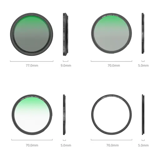 Das mehrfach vergütete optische Glas bietet zuverlässige optische Qualität. Das magnetische Befestigungssystem ermöglicht ein schnelles und effizientes Anbringen und Auswechseln der Filter. Es ist mit den mobilen Videocages (optional) von SmallRig kompatibel, die die Installation eines 67-mm-Filteradapterrings unterstützen, darunter Modelle wie die iPhone 15-Serie, Samsung S24 Ultra, Vivo X100 und Vivo X100 Ultra.