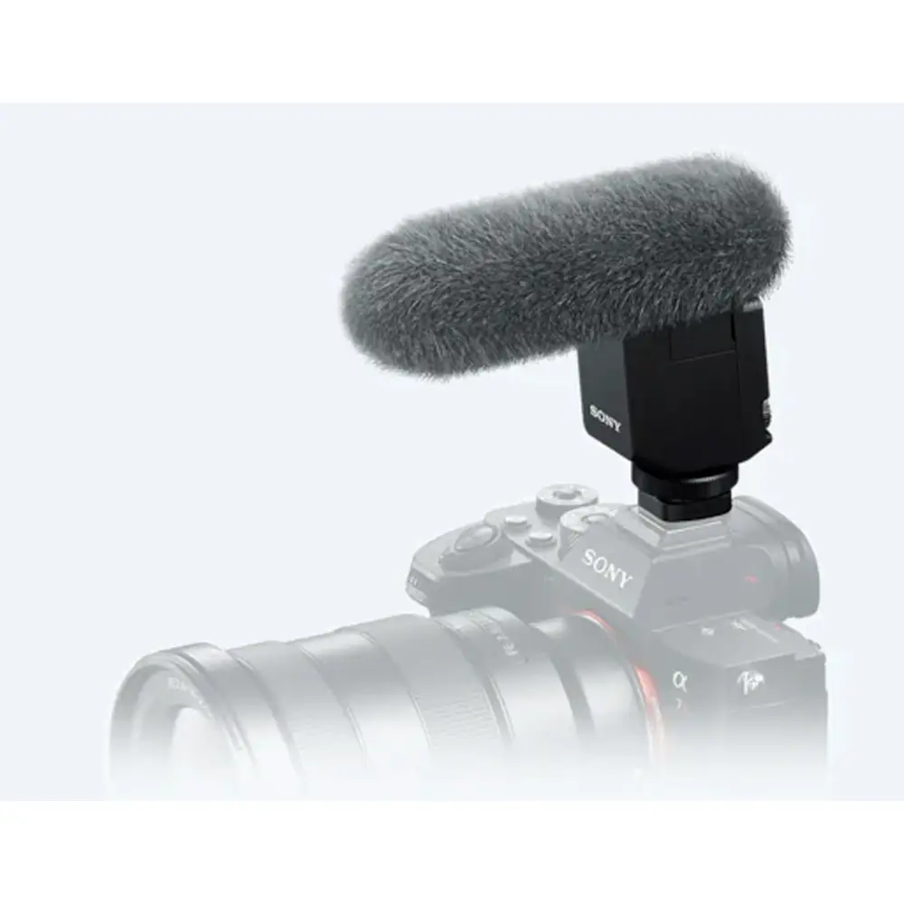 Drei RichtcharakteristikenDie fortschrittliche digitale Signalverarbeitung ermöglicht drei auswählbare Richtcharakteristiken in einem einzigen, vielseitigen Mikrofon: superdirektional, unidirektional und omnidirektional.Kompaktes Mikrofon mit hervorragender RichtwirkungAcht Hochleistungsmikrofone nutzen einen neu entwickelten Beamforming-Algorithmus, um eine extrem klare Richtwirkung zu erzielen, die effektiv Geräusche außerhalb der Achse unterdrückt. Dabei ist das Mikrofon mit einer Länge von nur 99,3 mm erstaunlich kompakt.Hervorragender Sound, geringes RauschenBei einer Verbindung über den Zubehörschuh mit mehreren Schnittstellen einer kompatiblen Kamera, die über eine integrierte digitale Audioschnittstelle verfügt, wird das Audiosignal in digitaler Form direkt an die Kamera übertragen, sodass keine Tonverluste entstehen. Ein einfacher Umschalter ermöglicht außerdem Kompatibilität mit einer breiten Palette an Kameras über eine analoge Schnittstelle.Kabellose VerbindungBefestigen Sie das Mikrofon einfach am Zubehörschuh einer kompatiblen Kamera, um eine direkte Stromzufuhr und Audioverbindungen herzustellen – ohne zusätzliche Kabel oder Batterien. Der Zubehörschuh mit mehreren Schnittstellen von Sony bietet intelligente Vernetzungs- und Steuermöglichkeiten für verschiedenes Zubehör und sorgt so für maximale Flexibilität und Mobilität bei der Aufnahme mit α Geräten.Mechanische GeräuschunterdrückungDas moderne Design zur Unterdrückung von Stößen und Erschütterungen minimiert effektiv niederfrequente oder Handhabungsgeräusche, die sich auf die Audioqualität auswirken können. Da keine Verbindungskabel nötig sind, werden unerwünschte Geräusche nicht mechanisch über Kabel und Anschlüsse an das Mikrofon übertragen.Effektiver Filter für kristallklaren SoundEin Hochpassfilter, der Infraschall ausblendet, ist über die digitale Signalverarbeitung implementiert und maximiert die Audioqualität bei der Aufnahme, sodass die Nachbearbeitung vereinfacht wird.Wichtige BedienelementeDie Steuerung der Aufnahmepegel, der Analogausgang für Kompatibilität mit einer breiten Palette an Kameras und ein Dämpfer zur Einstellung des optimalen Signalpegels tragen zur Vielseitigkeit dieser Kamera bei. Diese umfassenden Steuerungsoptionen können den Aufwand bei der Nachbearbeitung verringern.Mitgelieferter WindschutzDas ECM-B1M wird mit einem Fell-Windschutz geliefert, der das Windrauschen bei Außenaufnahmen reduziert.