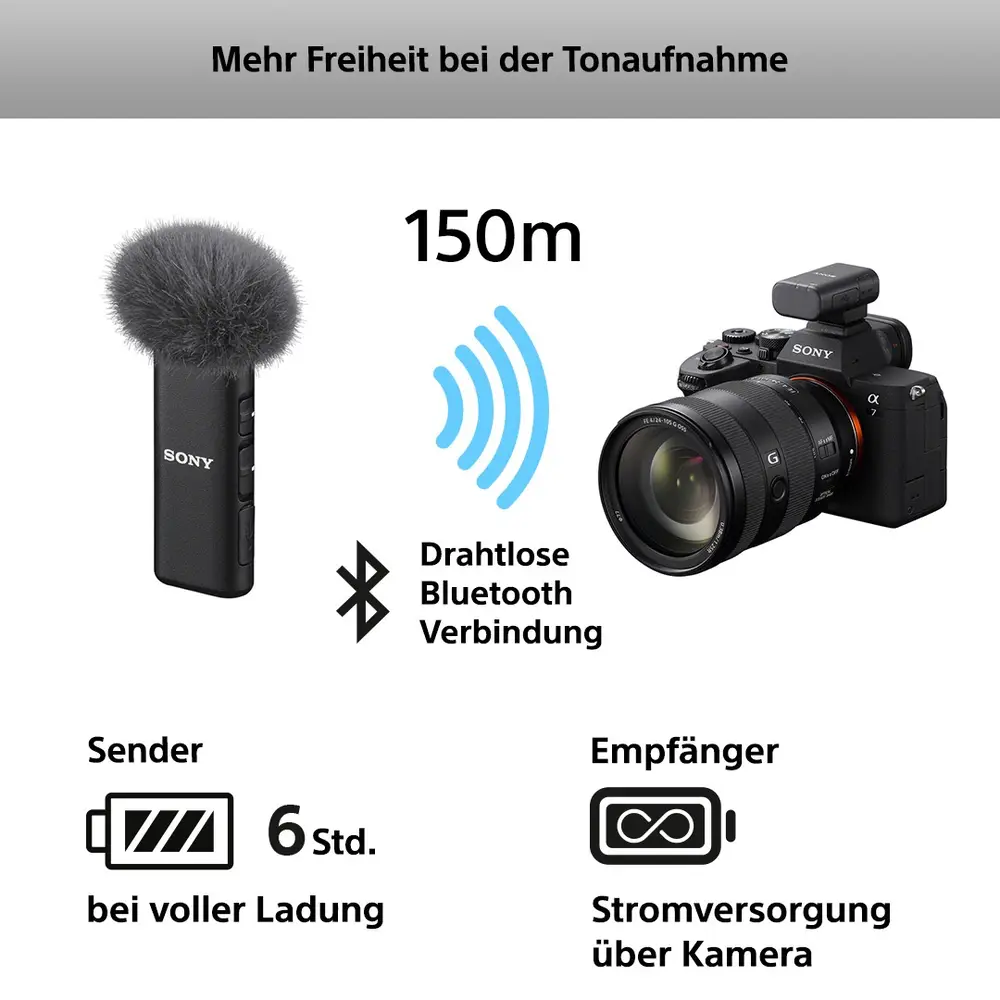 Interviews und Content Creation mit dem kabellosen Mikrofonsystem ECM-W3 in fesselnde Dialoge verwandeln. Das vielseitige Design bietet nahtlose Mobilität für Interviews an jedem Ort. Es ist kompakt, leicht und hat eine verlängerte Akkulaufzeit von 6 Stunden mit nur einmal Aufladen, sodass mit diesem System immer hochwertige Stimmaufzeichnungen aufgenommen werden können ohne den wichtigsten Moment zu verpassen. Dank der einzigartigen digitalen Audiotechnologie von Sony verfügt das ECM-W3 über eine intuitive Bedienung, ein hervorragendes Signal-Rausch-Verhältnis und ermöglicht müheloses Reduzieren der Hintergrundgeräusche durch den Rauschunterdrückungsfilter. Das All-in-One-Paket inklusive Ladeetui, Schutzhülle/-ständer und Windschutz ist das perfekte kabellose Soundaufnahmegerät für freischaffende Videofilmer und Content Creator.