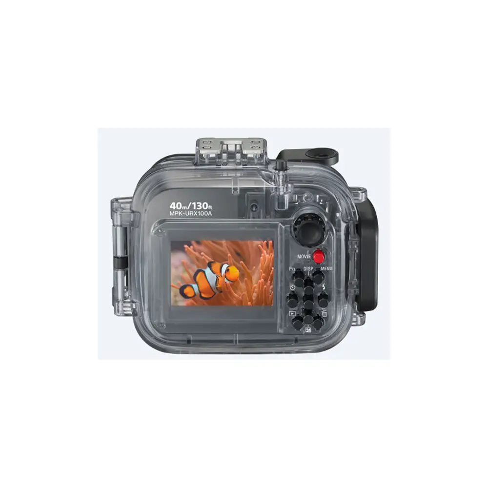 Highlights• Wasserdichte Sicherheit: Zwei Dichtungen sorgen für doppelte Wasserfestigkeit – selbst wenn sich in der ersten Dichtung etwas verfangen sollte, stellt die zweite Dichtung sicher, dass die Kamera trocken bleibt. 1: Tropfwassergeschützte Verpackung 2: O-Ring• Perfekt angepasstes Design: Das hochwertige Design passt perfekt zur kompakten Form der Serie RX100 und ermöglicht zugleich die Verwendung des integrierten Blitzes.• Einfache Bedienung: der große Auslöser und die Zoomregler sowie die taktile Rückmeldung der Drucktaste erleichtern die Bedienung.• Noch mehr Optionen: Das Gehäuse umfasst einen Zubehörschuh, an dem ein optionaler Blitz befestigt werden kann, ein Schraubgewinde mit drei Löchern für eine optionale Halterung und einen Griff sowie einen Filterträger mit einem Durchmesser von 67 mm, um einen optionalen Filter oder eine Vorsatzlinse anzubringen. • Anpassung der Kameraeinstellungen über das Drehrad: Durch die Befestigung des Gehäuses ist eine bedienerfreundliche Anpassung der Belichtung, der Blende, der Verschlusszeit und weiterer wichtiger Kameraeinstellungen über den Objektivring möglich.• Abmessungen (B×H×T): ca. 155,3 x 127,5 x 125 mm• Gewicht: 655 g (nur Gehäuse)