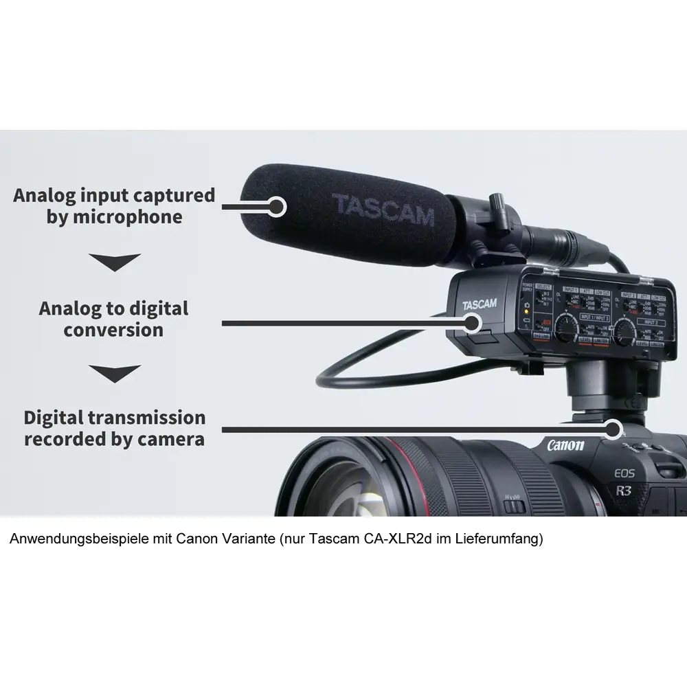 Der CA-XLR2d ist ein Zweikanal-Mikrofonadapter und -Vorverstärker, der es ermöglicht, mithilfe externer Mikrofone hochwertigen professionellen Stereosound mit einer spiegellosen oder anderen Kamera aufzunehmen. Dabei wird das Audiosignal zusammen mit dem Videosignal aufgezeichnet, so dass eine nachträgliche Synchronisation entfällt und sich der Zeitaufwand für die Postproduktion verringert.