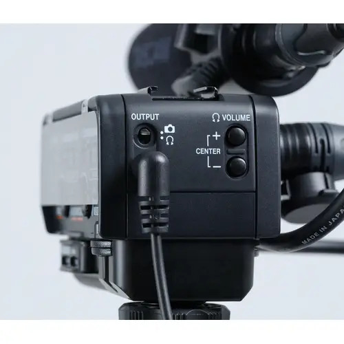 • Ein leistungsstarker A/D-Wandler überträgt digitale Audiosignale direkt und unverfälscht über den Zubehörschuh an die Kamera (kompatible Hersteller: Canon, Fujifilm)