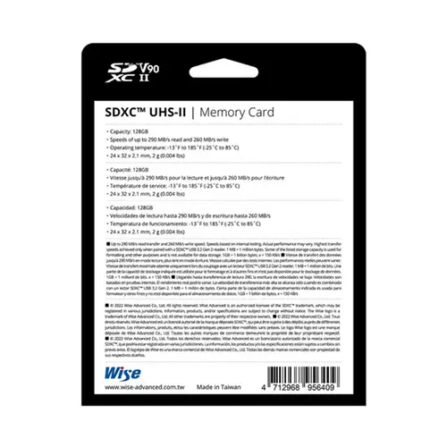 Wise SDXC UHS-II V90 128 GB Speicherkarte