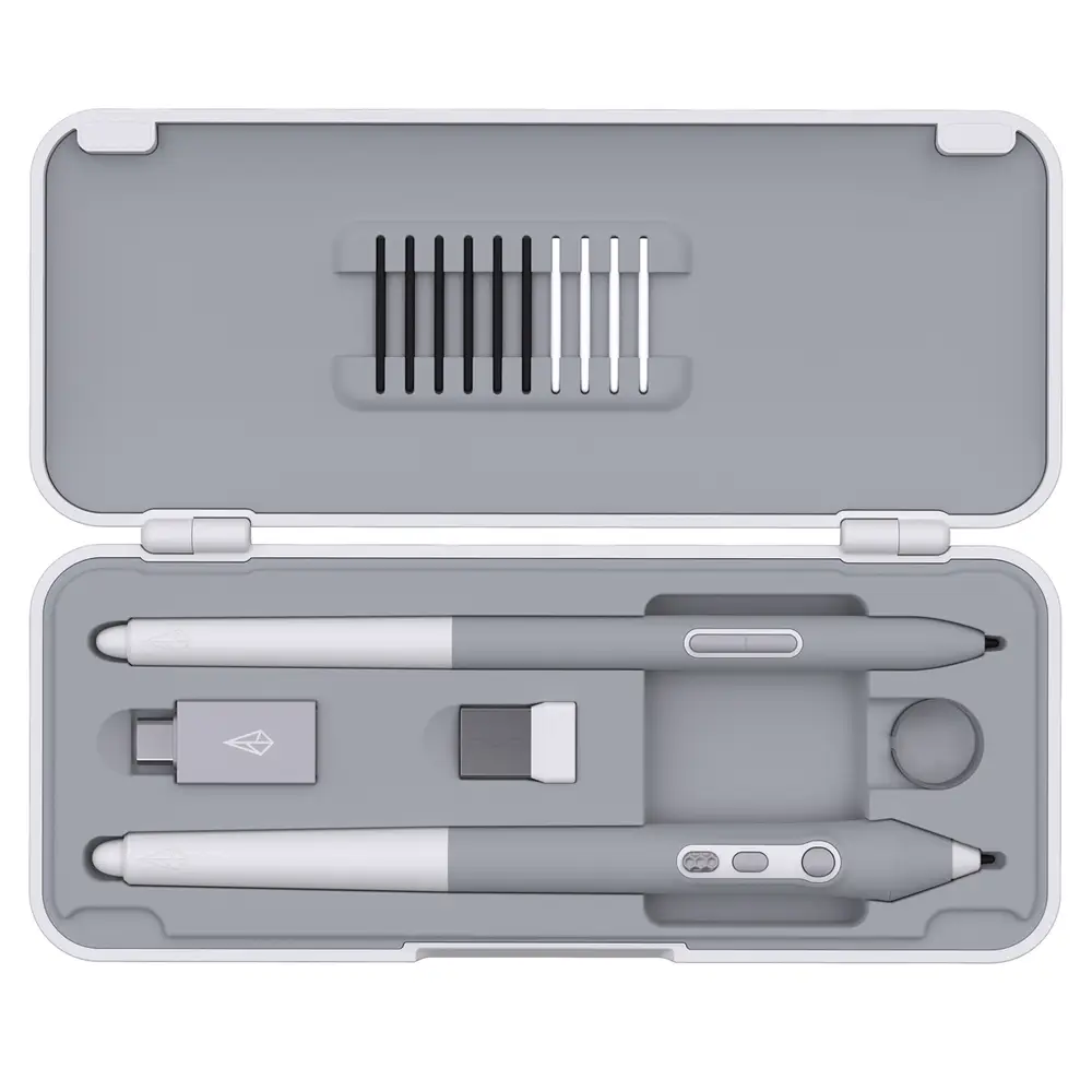 Zwei unterschiedlich große Stifte sind standardmäßig bei jedem unserer Tabletts enthalten, beide sind mit einem Radierer ausgestattet und bieten 8192 Druckstufen sowie eine 60 Grad Neigungserkennung. So werden auch die leichtesten Zeichenbewegungen erkannt und Sie haben die volle Kontrolle über Ihren Workflow.