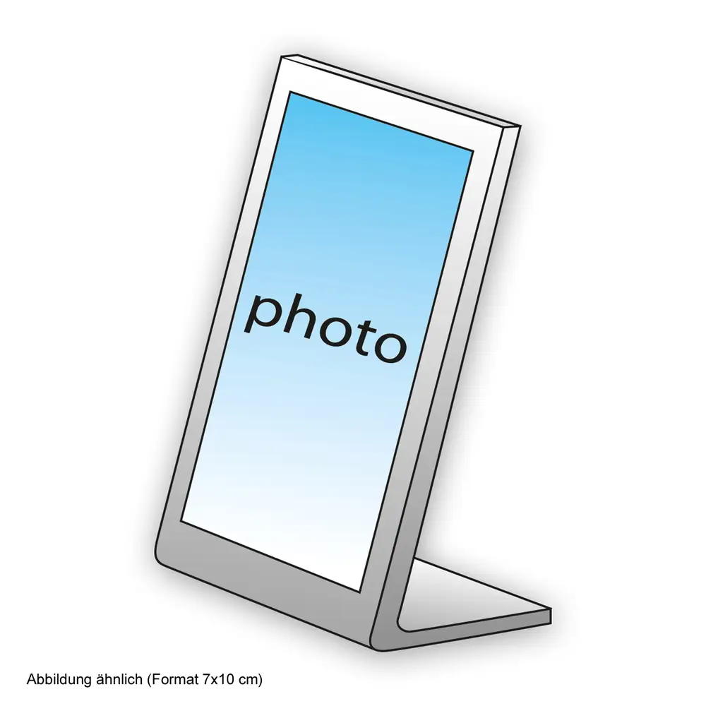 Tischrahmen für ein Foto 7x10 cm im Hochformat zum Stellen aus klarem Acryl