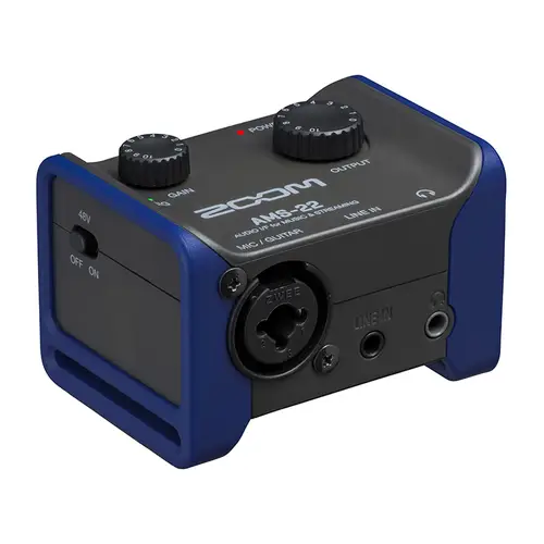 Als perfekte Lösung für mobiles Recording und Streaming bietet das AMS-22 einen XLR/TRS-Combo-Eingang sowie einen Stereo-Line-Eingang. Zudem stehen ein Kopfhörerausgang und zwei TRS-Ausgänge zum Anschluss externer Monitore zur Verfügung.