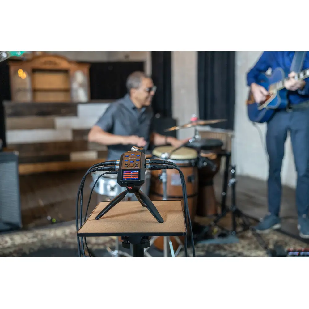 Der H6essential ist ein tragbares Studio. Mikrofonieren Sie bis zu vier Instrumente über die XLR-Eingänge und verwenden Sie die X/Y-Mikrofone, um ein ganzes Ensemble in beeindruckender Stereoqualität aufzuzeichnen.