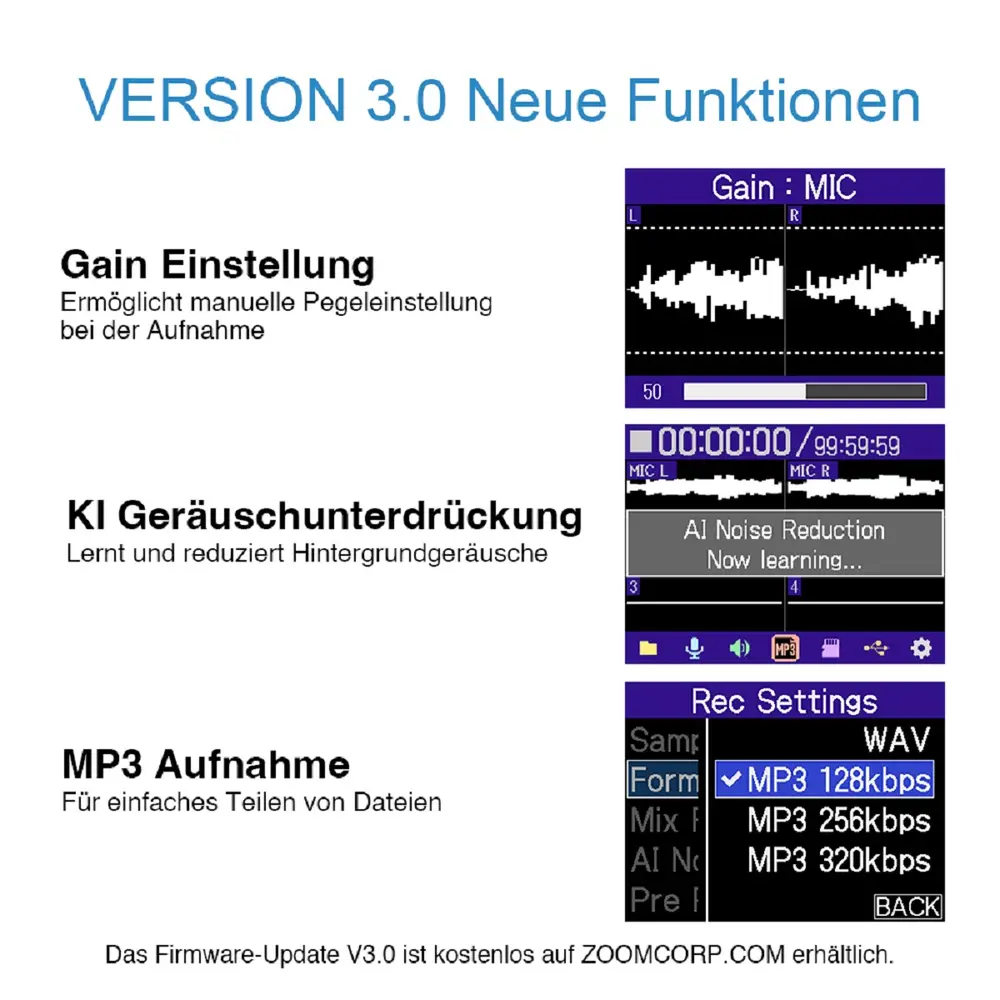 • (48 kHz/32-bit Float, Mikrofonkapsel 2-Kanal-Aufnahme)
