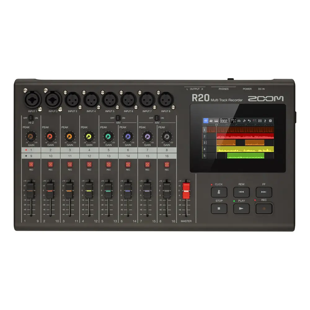 Dank der Touchscreen-Bedienoberfläche ist es mit dem R20 unglaublich einfach, Songs aufzunehmen, zu editieren und zu mischen, sodass Sie sich ganz auf die Musik konzentrieren können. Der R20 bietet die besten Vorverstärker aller von Zoom jemals entwickelten Mehrspurrekorder. Mit sechs XLR- und zwei Combo-Eingängen sowie 16 Aufnahmespuren ist der R20 die perfekte Lösung für Singer-Songwriter und Bands.